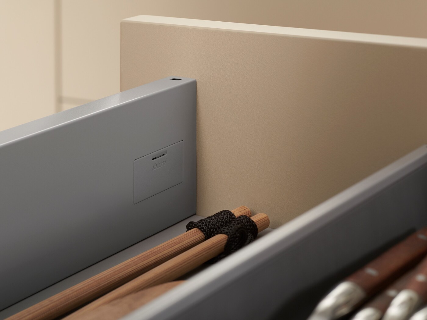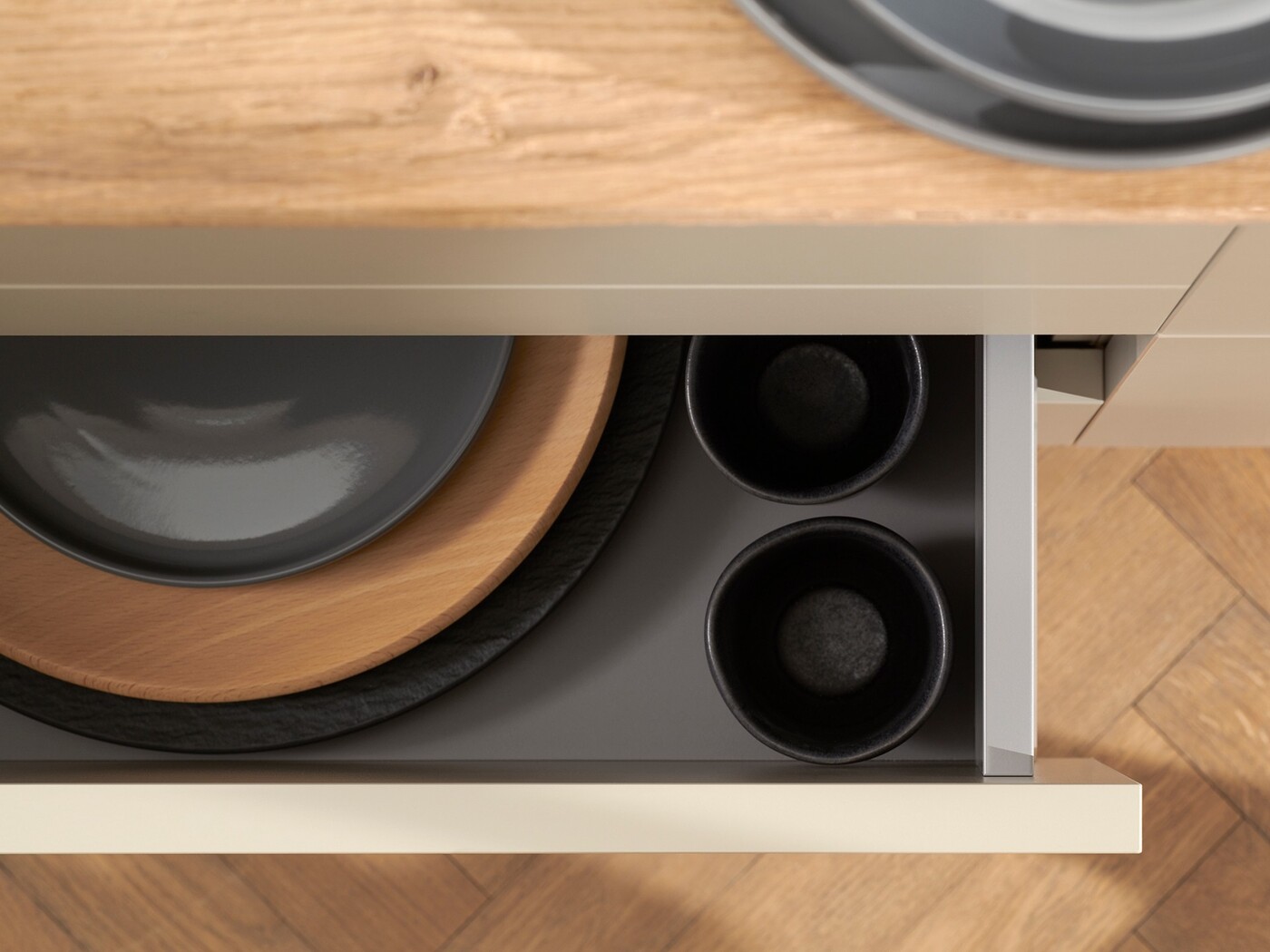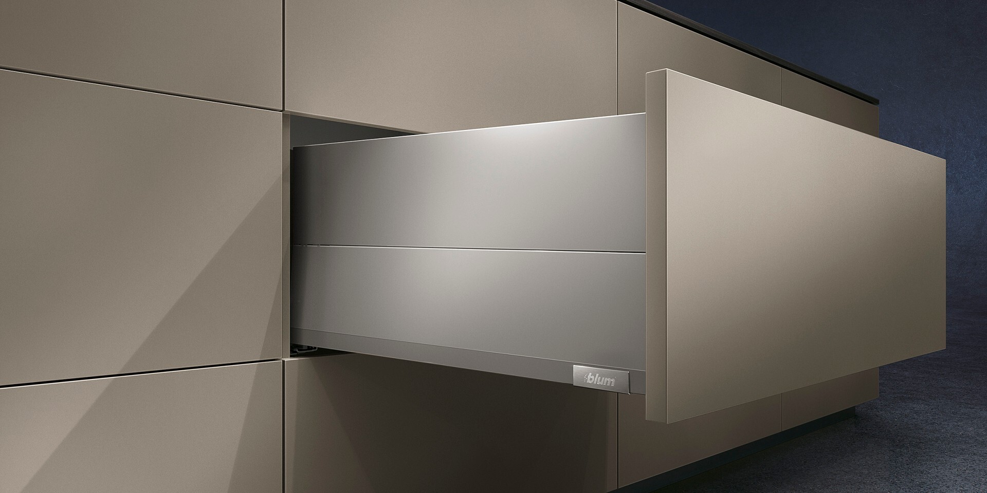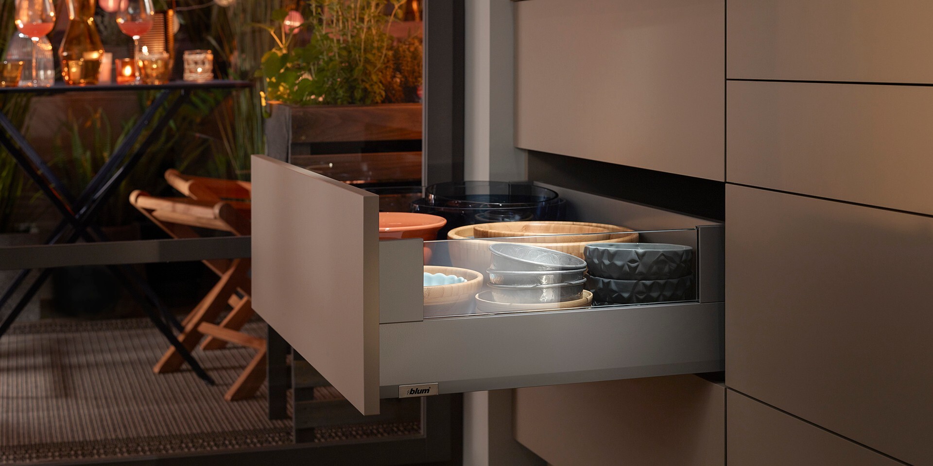 Инновационная L-образная форма направляющих обеспечивает ящикам MERIVOBOX исключительную стабильность – даже при высокой нагрузке они впечатляют своим движением. Наряду с синхронизированным плавным ходом высокая стабильность фасада предоставляет новые возможности для дизайна кухонной мебели – Вы можете без проблем сочетать высокие фасады с низкими царгами.