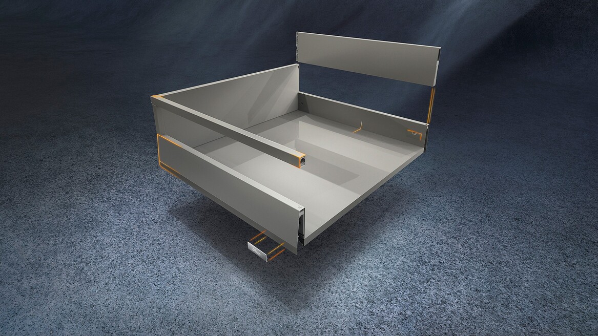 Три основные составляющие – направляющие, царги и фасад – предоставляют разнообразные возможности для оформления ящиков при неизменном процессе сборки. MERIVOBOX – единая платформа, основа для Вашего широкого ассортимента.