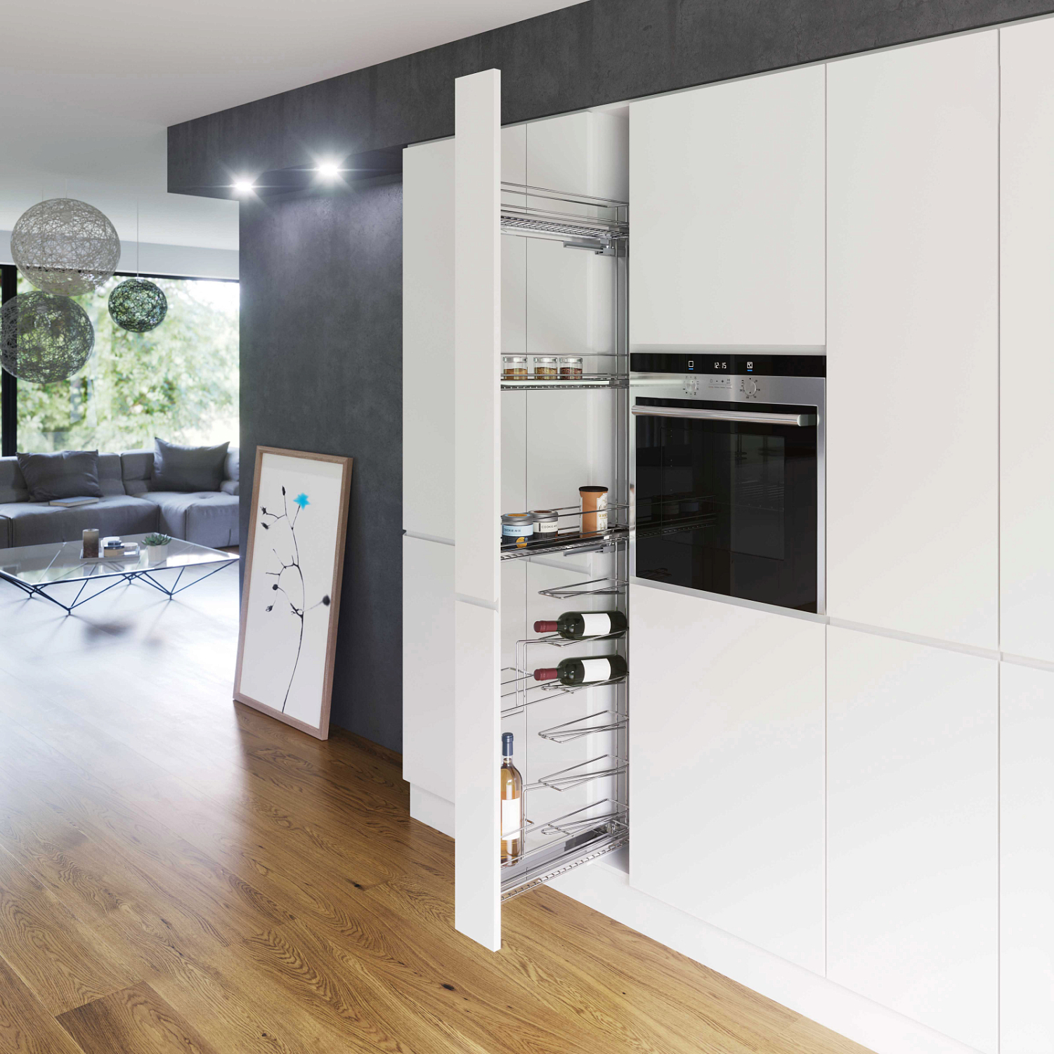 Suportul extensibil pentru sticle TAL Rack&Bottle15 este potrivit pentru depozitarea proviziilor și a vinului în dulapuri înalte și înguste. Sistemul este atașat pe partea frontală și dreaptă a dulapului. Coșurile nu sunt detașabile. Sarcina maximă pe sistem este de 25 kg.
